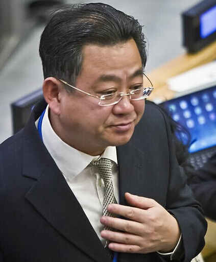 表決通過后,朝鮮外務省副局長崔明男從會場走出時的表情。