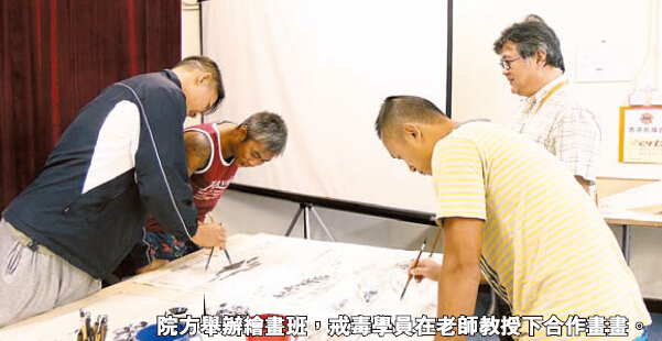 在院方行政樓教學室舉辦的繪畫興趣班上,記者看到3名戒毒者手持毛筆,低頭專心合畫一張工筆畫,老師則在一旁指導。下課時,戒毒者之一,家住新界的馬丁向記者表示,來院4個月了,入院前做地盤工,曾吸食冰毒和咳藥水,白天睡覺,晚上在外「夜蒲」,身高1.8米的他,體重只有120磅,入院戒毒時,全身不舒服,現在康復期,體重增加到150磅。