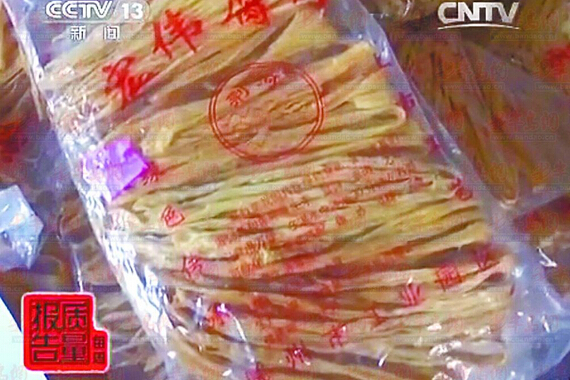 腐竹是很多人都愛吃的東西,包括我在內,但是我們的記者在調查中發現,一些企業在生產的時候,會往里面添加一種特殊的大料。這種添加了大料的腐竹吃起來口感很好,但是很有可能危害我們的身體健康,是一種地地道道的毒腐竹。