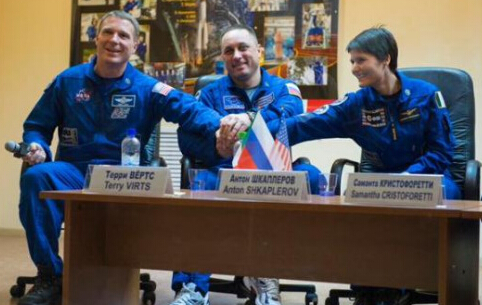 此次前往國際空間站駐站的三位宇航員是來自俄羅斯航天署的安東?什克普列羅夫、美國航空航天局的特里?維爾特斯和歐洲航天局的女宇航員薩曼莎?克里斯托弗雷蒂。