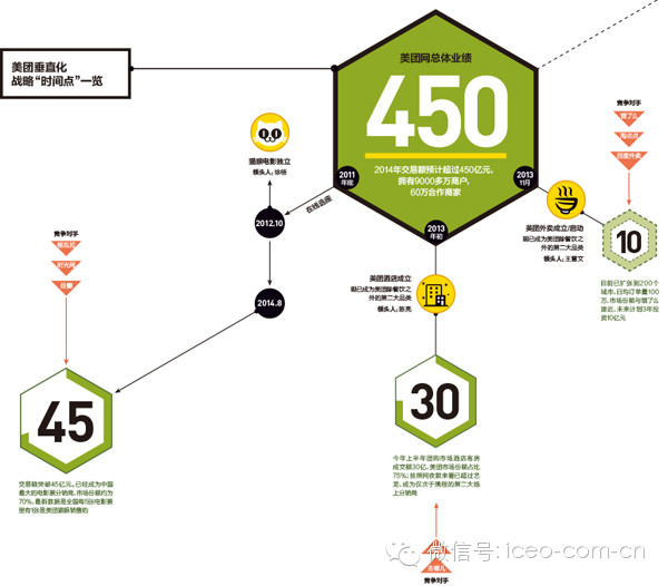 如果把美團的團購看作一個平臺的橫線,那麼貓眼電影、酒店、外賣等則是一條條深入垂直領域的分隔號。在美團內部,這些不斷拓展細分領域的行動被稱為“T型戰略”。