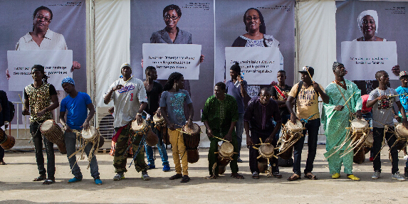 鼓手們在法語國家文化村開幕儀式上表演。