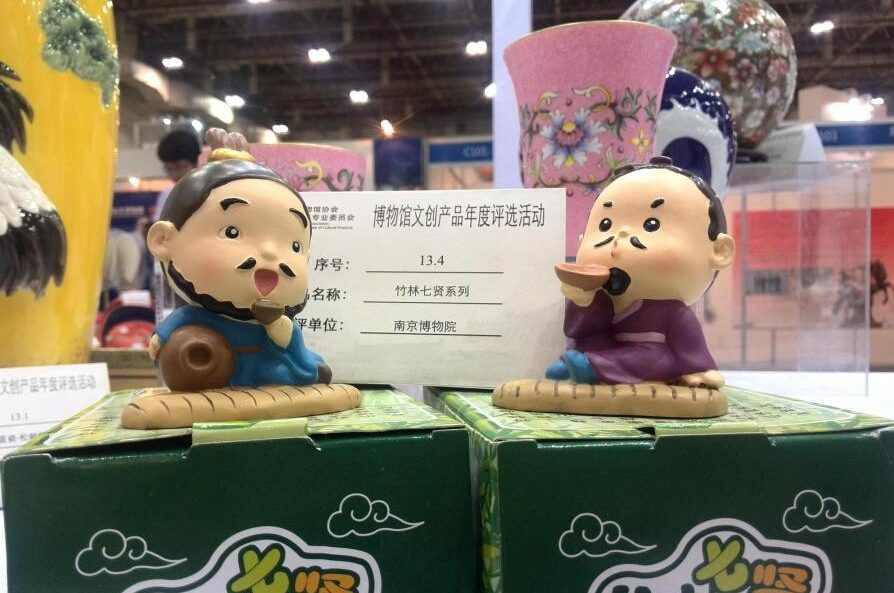 南京博物院“萌萌哒”竹林七贤。源于其镇馆之宝、1960年在江苏省南京市西善桥南朝墓葬出土的砖印模画,是迄今为止所发现的最早一幅魏晋人物画的实物,也是现存最早的竹林七贤人物组图。应妮 摄