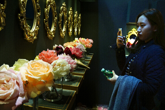 在韓國首爾舉行的設計周上,一名觀眾拍攝展品。