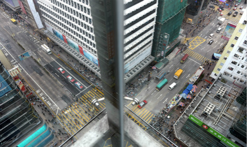 11月26日,恢复交通的香港旺角彌敦道(左)和亞皆老街十字路口。新華社記者秦晴攝