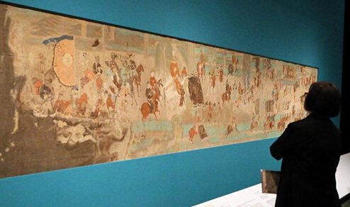 11月27日,一位觀眾在參觀“敦煌——說不完的故事”大型展覽。