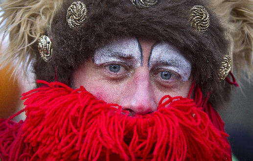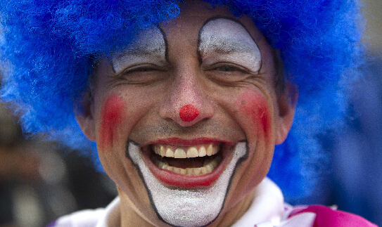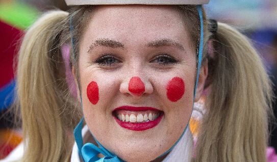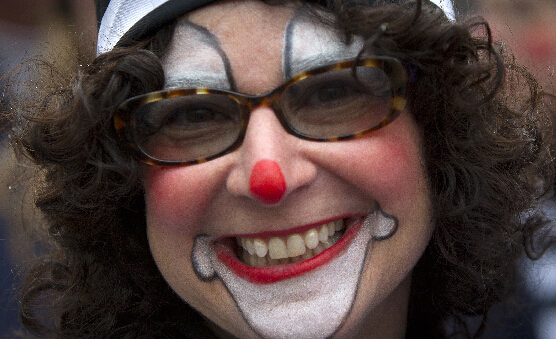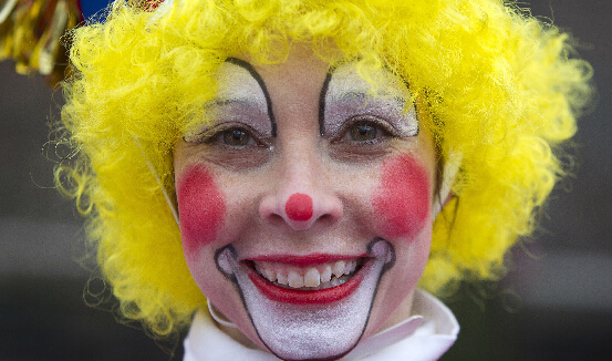 11月27日是美国、加大拿等国的感恩节,在纽约街头,许多市民扮成各种姿态的小丑准备参加恩节大游行。路透社