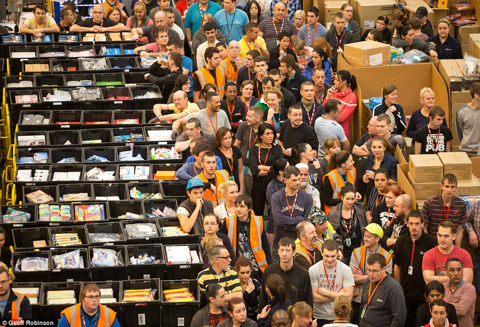 據英國《每日郵報》11月25日報導,美國亞馬遜商城的倉庫正在為即將到來的“黑色星期五”購物狂歡季緊張備戰。亞馬遜員工在倉庫裡進行補貨和查貨等相關工作。“黑色星期五”在美國用來指每年感恩節之後的第一天,這一天通常被認為標誌著聖誕採購季節的正式開始。