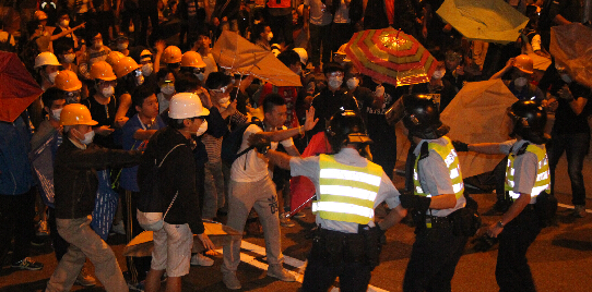“財爺”昨日再次呼吁占領人士立即撤離,讓社會恢愎秩序,停止傷害香港和所有無辜市民。中新社