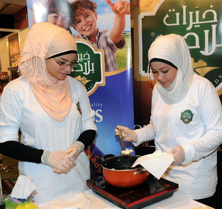 兩名敘利亞女孩在2014食品展覽會上展示自制食用油。