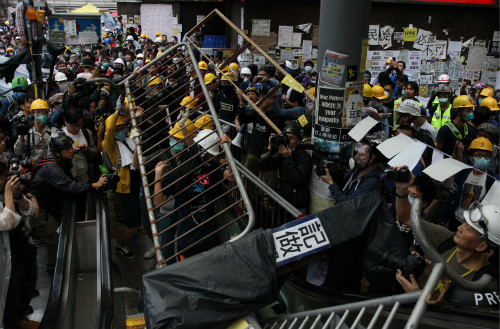 示威者在金鐘設置路障