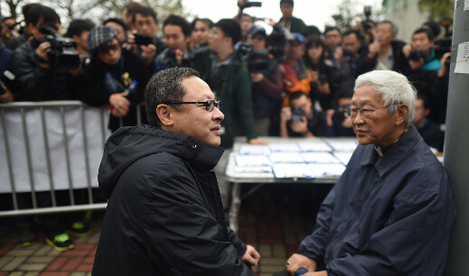 香港商报网讯 香港非法“占領中環運動”三名發起人,即香港大學副教授戴耀廷、香港中文大學副教授陳健民、香港牧師朱耀明,今天(3日)下午15點后陸續到香港中區警署自首,承認“參與未經批準的公眾集會”罪名。