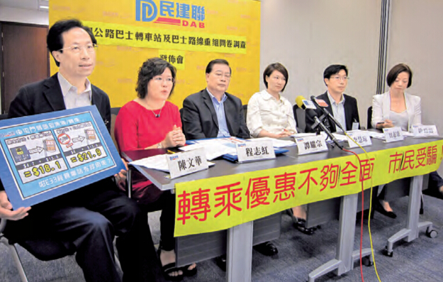 民建聯在轉乘站啟用初期召開記者會抗議轉乘優惠不全面