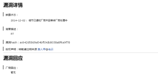 12月2日20:19,烏雲白帽子“路人甲”提交了一個關於“東方航空大量使用者訂單資訊洩露”的漏洞,不過目前,漏洞狀態仍然是“等待廠商處理”。
