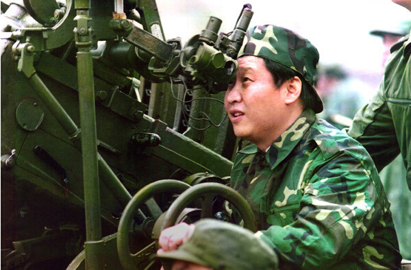 資料圖:1997年11月,時任福建省委副書記、福建陸軍預備役高炮師第一政委習近平體驗某型高炮炮手訓練。