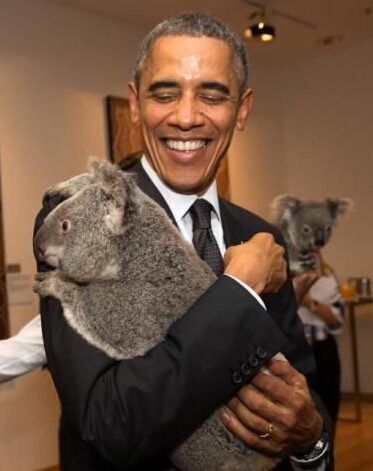 資料圖:當地時間2014年11月15日,澳大利亞布里斯本,G20峰會在當地舉行,美國總統奧巴馬懷抱考拉。