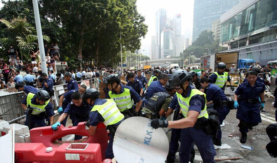 【香港商報網訊】記者王珈莉報道:警方今早9時展開金鐘占領區清場行動,23名泛民議員、學民思潮及學聯(「雙學」)昨日分別聲稱,在警方清場時,會堅守禁制令範圍以外及聚集在解放軍軍營外,以所謂「和平非暴力」原則抗爭。