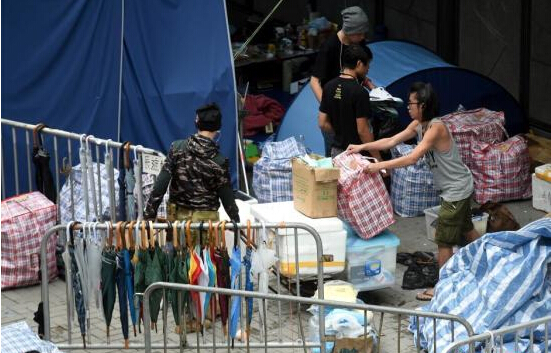 據港媒報道,9日的金鐘“占領區”,現場沒有太多“占領”者留守,僅剩下大批障礙物,有個別“占領”者陸續收拾帳篷離開,并聲言長時間“占領”令他們身心俱疲,故他們已經做好撤離準備。