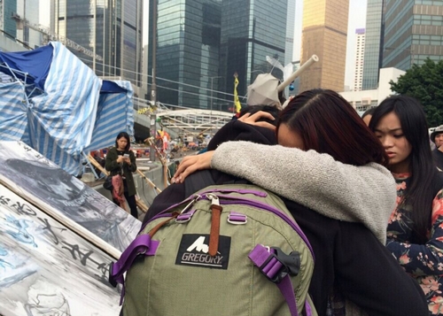 有佔領人士離開占领区時一度感觸相擁落淚。