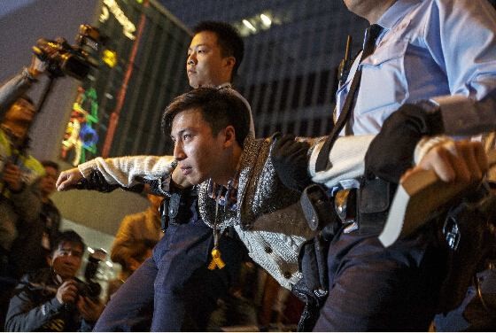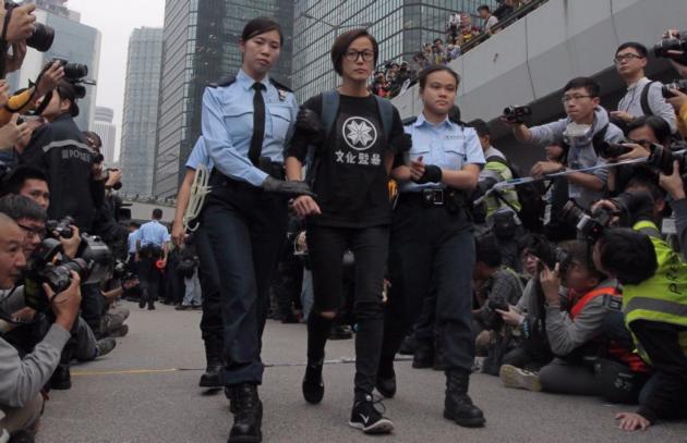 ◆學聯羅冠聰被抬走 藝人何韻詩由女警帶走