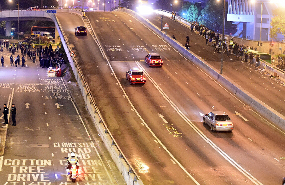 據了解,此次行動會分兩階段進行,期望一日內完成清障工作,深夜前恢復金鐘及中環通車。