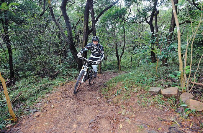 越野單車近年甚受歡迎,但要在山路間穿插,行走崎嶇不平的道路,稍一不慎,易損手爛腳。記者 蔡啟文攝