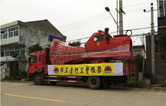 據該負責人介紹,這臺防空警報器絕對能稱得上是一個龐然大物,之所以說它是全球最大,主要是三方面:體積大、功率大、分貝大。