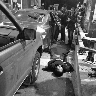 見此情狀,林鋒隊長隨即拔出腰間手槍,朝天放了一槍進行警告。但是,兩名毒販并沒有束手就縛,而是加速倒車撞向堵住其退路的、由民警林軍開著的另一輛皮卡車,受此撞擊,林軍也受傷被卡在了車內,但兩名毒販并沒有就此放棄,而是駕駛車輛直接沖向了圍堵的民警,并致7名警察不同程度受傷。