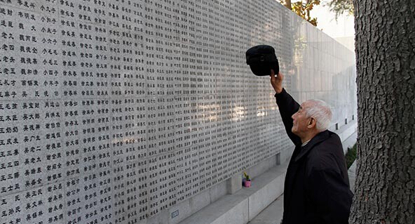 一名南京大屠殺幸存者祭奠被日軍殺害的同胞