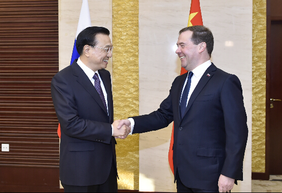 梅德韋傑夫表示,李克強總理不久前成功訪俄,有力推動了俄中關系發展。雙方的重點合作項目正在穩步推進。俄方願進一步加強兩國在油氣、核能、水電、金融、科技創新、航空制造、航天等領域及俄羅斯遠東地區的合作。俄方願同中方加強在上合組織框架內的合作,維護地區的和平、穩定與發展。