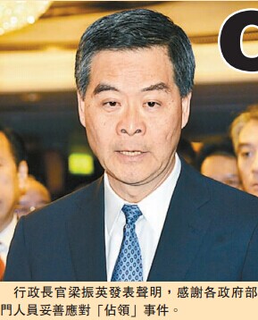 CY晚上發表聲明,公開感謝各政府部門人員妥善應對「占領」事件。聲明說:「隨著今天銅鑼灣『占領』行動結束,在『占領』行動期間被非法占據的路段已全面開通,公共交通服務亦全部恢復正常。」
