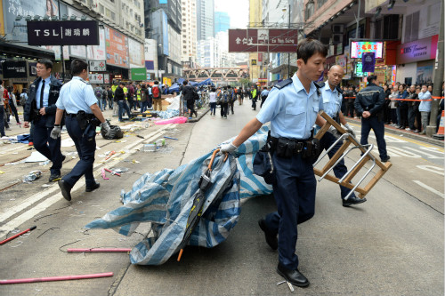 12月15日,警察在香港铜锣湾怡和街清除非法霸占道路的障碍物