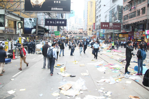 警方于15日清除「占中」位于铜锣湾怡和街的马路占据点