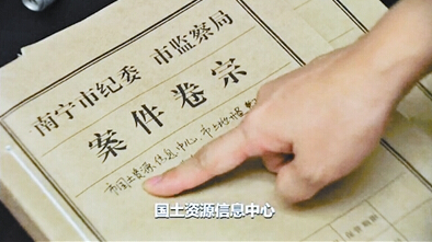 南寧市紀委工作人員展示違規發放福利卡事件的案件卷宗供圖/央視