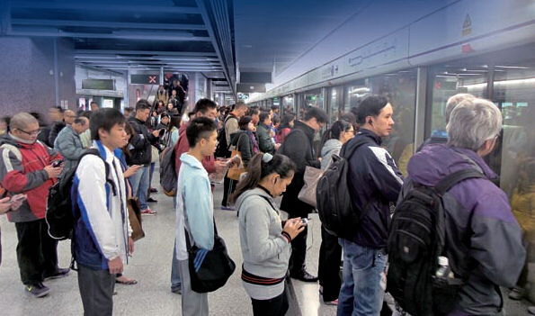 【香港商報網訊】記者周駿報道﹕將軍澳新市鎮人口迅速增加,搭乘將軍澳線列車的乘客,冀港鐵縮短繁忙時段(早晚上下班)候車時間,以紓解車廂擠迫情況,而該線康城站乘客,更希望增加班次。12月8日,港鐵推出全新「2+1」列車服務,安排在繁忙時段(首兩班車開往寶琳站,第三班車則以康城站為終點),令康城站列車班次由10分鐘縮至7分鐘,而該線寶琳開往北角的列車維持現時每小時18班車,新服務旨在紓解全線油塘、芻魚涌換乘站乘客擠迫情況。
