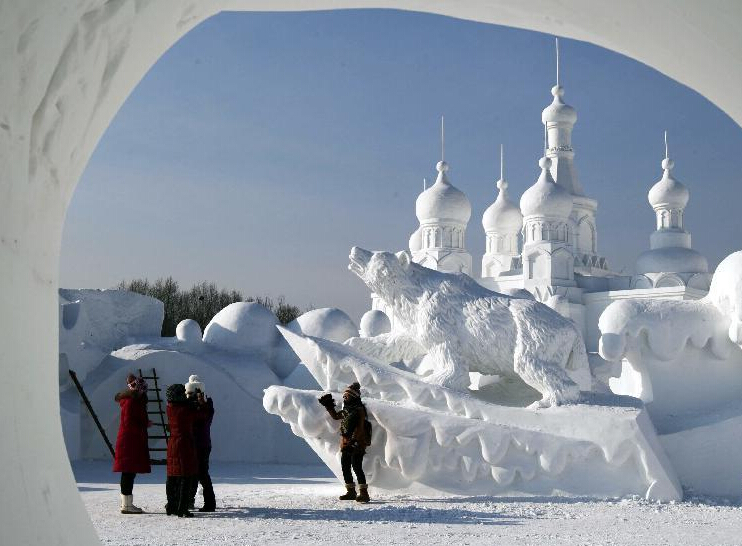太陽島國際雪雕博覽會大型雪塑《綻放》(局部)。