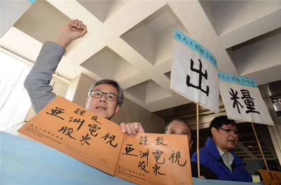 港九工團聯合總會早前向亞視管理層抗議拖欠員工薪金。(資料圖片)