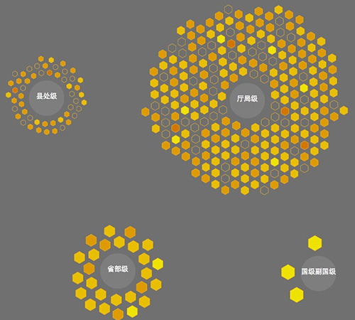 在資料產品中,以2014年6月到12月被通報官員共319人作為物件,按年齡段和級別進行分析後可以發現,“50後、60後”、廳局級成為貪腐的最高危人群。其中,“50後”和“60後”分別占比近五成和近四成,廳局級占比達到2/3。