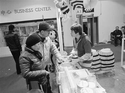 在哈爾濱一家中華老字號前,很多上海市民手拿著錢,爭相要購買該企業的香腸,但是參展企業的工作人員卻不賣貨,為啥?只聽工作人員向現場的顧客解釋:“我們主要是想讓大家先嘗嘗我們哈爾濱紅腸的味道,歡迎代理商前來洽談;另外,歡迎大家去哈爾濱旅游,在著名的中央大街就能買到我們的香腸,還有面包。”
