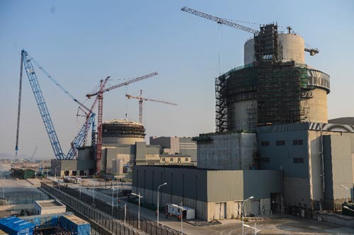 12月25日,三門核電站一期工程在建的1、2號機組在加緊建設中。