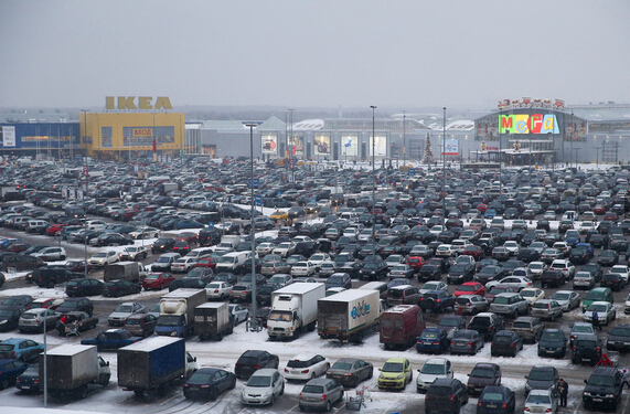俄羅斯莫斯科,Mega商場的停車場里停滿了車輛。