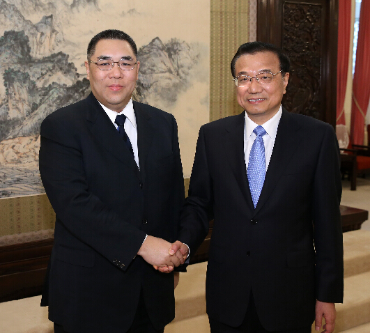 國務院總理李克強在中南海紫光閣會見澳門行政長官崔世安。李克強表示,澳門回歸祖國15年來可以說經濟發展、民生改善、社會穩定,保持持續繁榮穩定,這與兩個特首、三屆政府的努力密不可分,中央政府對特區政府工作充分肯定。