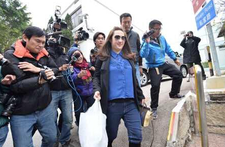 郭炳江的女儿和儿子中午现身赤柱探监。