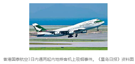中新網12月28日電 據香港《星島日報》報導,有內地煙民在香港國泰航機吸煙被捕,系三日內第二起。