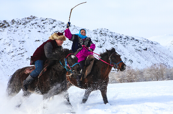阿勒泰拉斯特鄉牧民進行姑娘追比賽。