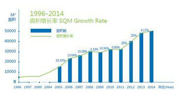 在這十年的發展中,1996年整個面積數大概在5000平米左右,2014年達到毛面積5萬平米,是有十倍的增加;展會選址也不斷提升,2005年是從國際會議中心搬到上海展覽中心,有50%的增加,2006年繼續保持53.3%的增加,2012年從上海展覽中心搬到世博展覽館,有25%的增加;在展商數量上,1996年只有65位展商,到2014年有550位的展商,實現了8倍的增長,特別是2005-2006有爆發式的增長;從觀眾來看,1996年大概是不到5000,到如今一場展會有36000的觀眾(經第三方認證數字),觀眾人數增長了近7倍。這些數字不但反映了上海國際游艇展的發展,甚至可以作為中國游艇行業發展的里程碑。