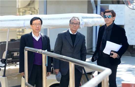 新地三名「老臣子」今早到赤柱監獄探望郭炳江。左起:雷霆、黃植榮、董子豪。