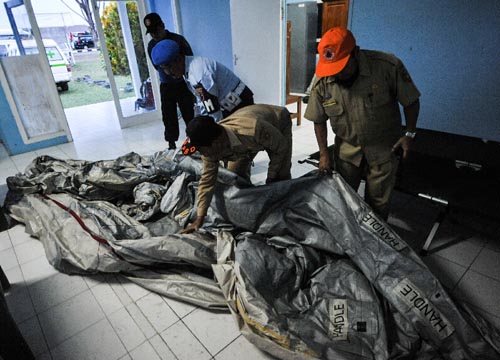 印尼官員表示,在亞航航班失聯地點附近發現數具遇難者遺體,電視畫面顯示,至少有一具遇難者遺體漂浮在海面上。印尼官員說,發現的遺體腫脹但完好,身上沒有穿救生衣,已被移送到一艘印尼海軍軍艦上。不過,對於此前有一名印尼海軍官員說,已經發現40具遺體,印尼國家搜救局負責人表示,下屬錯誤傳達了他的意思,目前疑似亞航客機QZ8501的遇難者只有3具遺體被打撈,已經被轉移至軍艦,他們分別為兩名女性和一名男性。