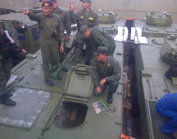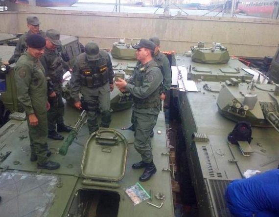 據國外媒體報道,近日,委內瑞拉海軍陸戰首支隊裝甲化部隊成立,而這支裝甲部隊所使用的裝甲車輛,就是中國向其出口的VN-1型8X8輪式步兵戰車。外媒發布照片顯示,委內瑞拉海軍陸戰隊官兵正在一艘貨船的貨艙內接收多輛綠色塗裝的中國造VN-1型8X8輪式步戰車。來源:環球網