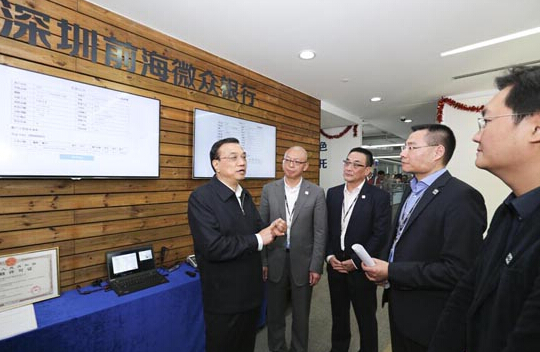 昨日下午,國務院總理李克強率財政部、發改委、工信部、銀監會、證監會等多個部委負責人視察深圳前海微眾銀行。在微眾銀行內,李克強敲下電腦回車鍵,卡車司機徐軍就拿到了3.5萬元貸款。這是微眾銀行作為國內首家開業的互聯網民營銀行完成的第一筆放貸業務。